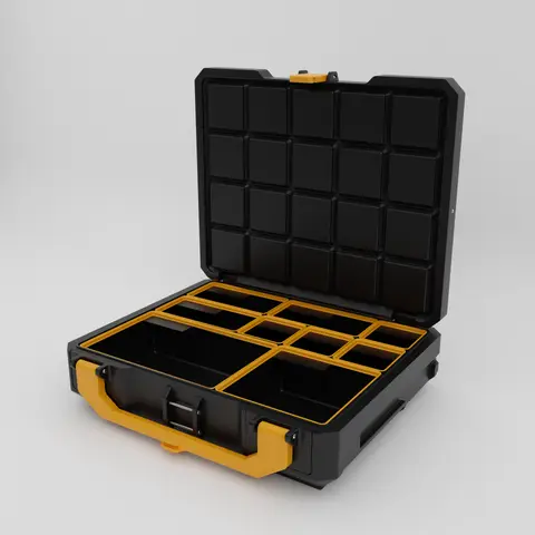 A compact, workshop-ready storage box built around the Gridfinity ecosystem — with a Gridfinity-compatible top, base, and interior so everything stays consistent and modular. The one-hand latch, controlled lid stop, and durable pinned hinges make it a joy to use every day, whether it’s on a bench, in a drawer, or mounted as part of a fixed setup.