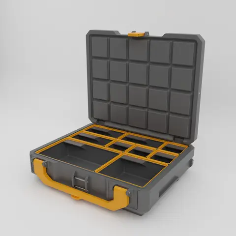 A compact, workshop-ready storage box built around the Gridfinity ecosystem — with a Gridfinity-compatible top, base, and interior so everything stays consistent and modular. The one-hand latch, controlled lid stop, and durable pinned hinges make it a joy to use every day, whether it’s on a bench, in a drawer, or mounted as part of a fixed setup.