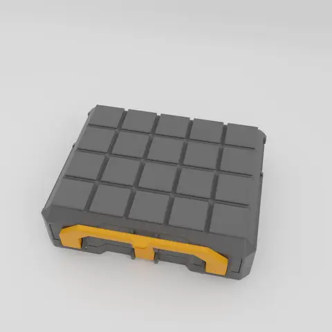 A compact, workshop-ready storage box built around the Gridfinity ecosystem — with a Gridfinity-compatible top, base, and interior so everything stays consistent and modular. The one-hand latch, controlled lid stop, and durable pinned hinges make it a joy to use every day, whether it’s on a bench, in a drawer, or mounted as part of a fixed setup.